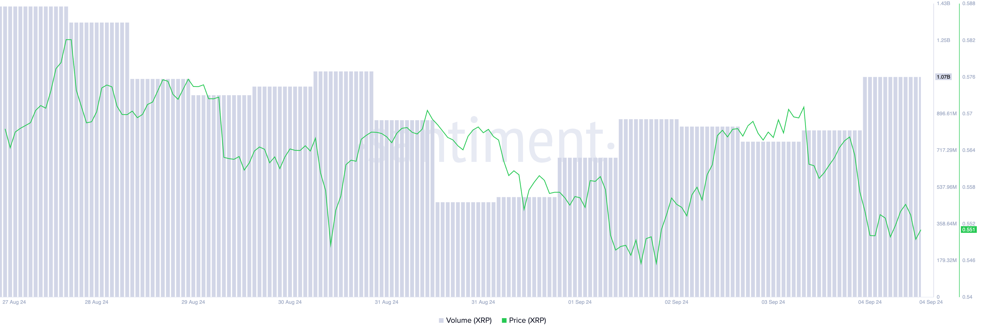 XRP Price and Trading Volume. Source: Santiment